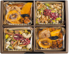 フルーツやナッツと、自然な美味しさで素材の味が分かりやすい詰め合わせ。無添加・砂糖不使用という点や箱の美しい仕立てが、健康志向の方や贈る相手を気遣うギフトとしても好評です。