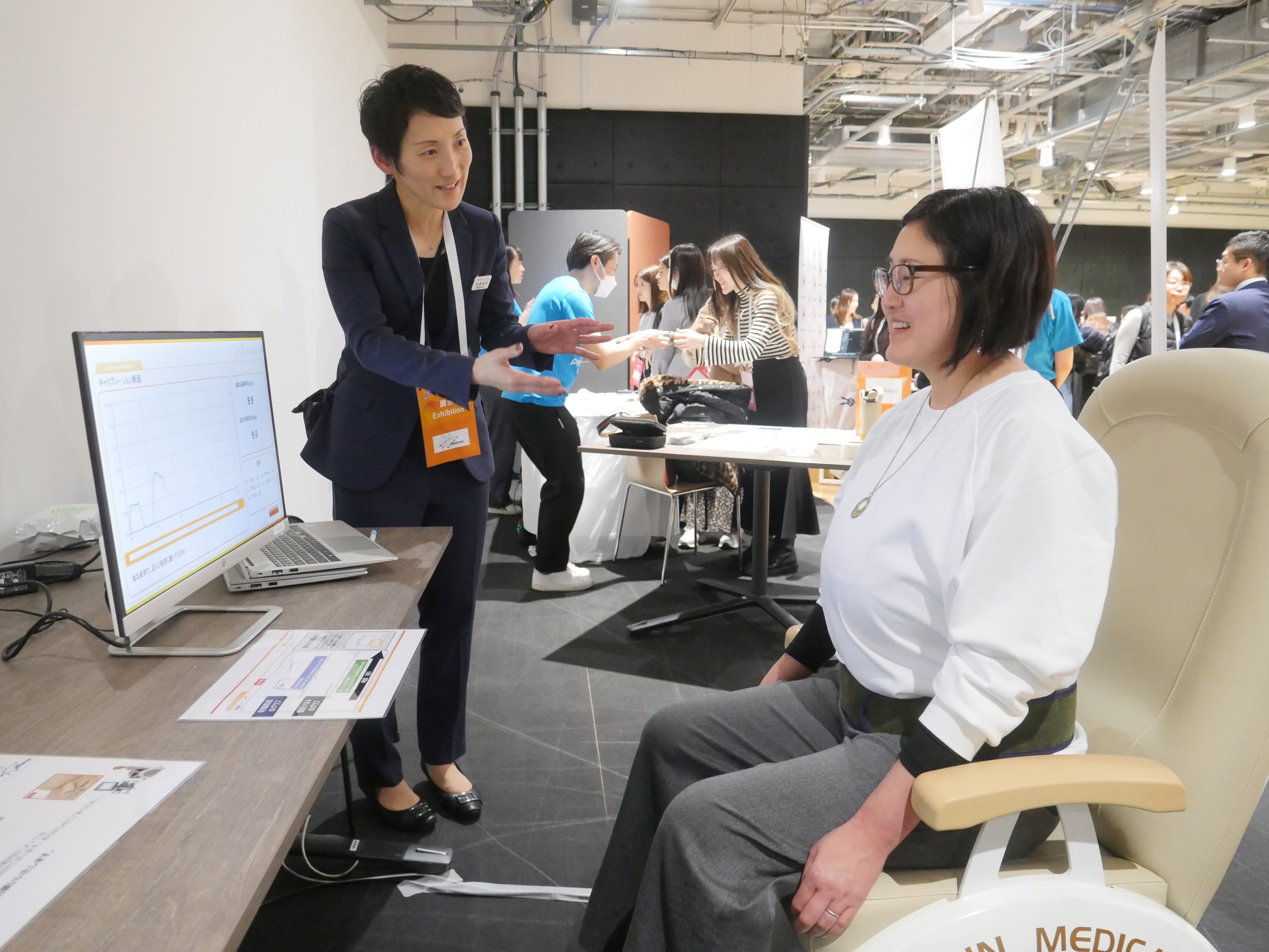 展示エリアには、20社のフェムテック商材・サービスが並び、実際に体験したり、事業者から説明を聞く貴重な機会となりました。多くの来場者が事業者のプロダクトに対する想いに耳を傾け、最新のフェムテックを感じながら会場を周りました。