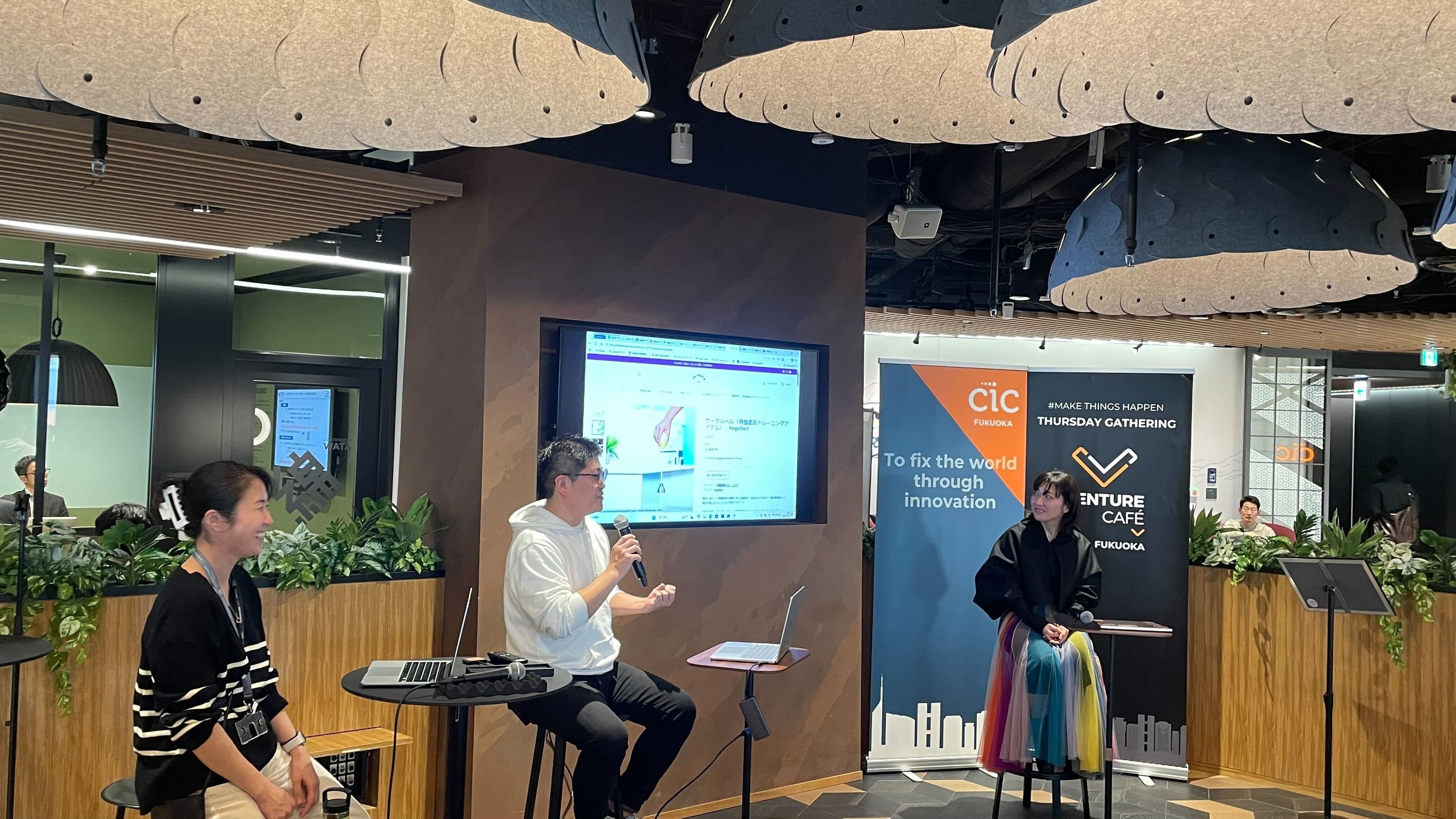 今回、連携パートナーであるCIC Fukuokaにて、本カンファレンスのサイドイベントを実施しました。本イベントでは、カンファレンスの一部セッションをCIC Fukuokaへライブ配信し、現地での視聴後に、以下のパネルセッションを開催。約20名が集まりました。