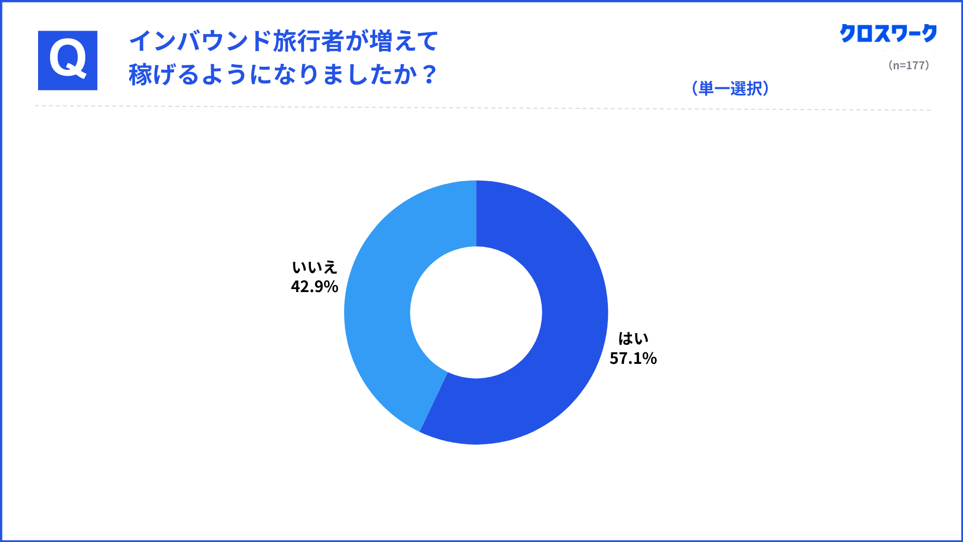 また、101名(57.1%)がインバウンド旅行者の増加によって「稼げるようになった」と回答しています。