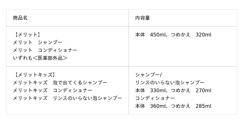 「merit」は、今後も“やさしさ・安心感・清潔”を届ける“家族愛”ブランドとして、家族みんなをやさしい泡で清潔に洗い上げるシャンプーと日本中の家族に共感いただけるようなメッセージを届けてまいります。