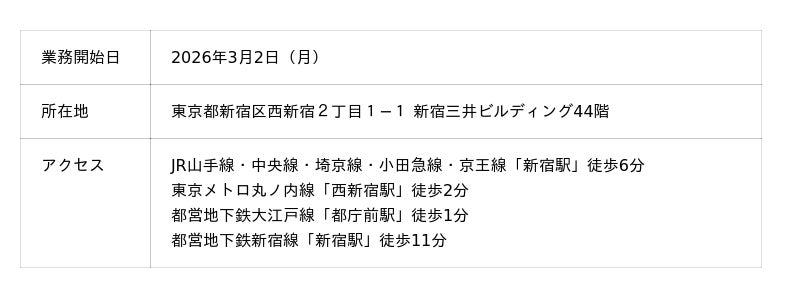 本拠点の開設を通じて、社内連携の強化と業務効率の向上を図るとともに、今後の事業成長を支える基盤の強化を進めてまいります。