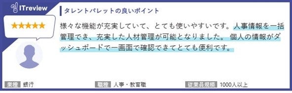 ITreview(*3)の「タレントマネジメント」部門では、「開発スピードの速さ」や「機能性の自由度」の点で高い評価を受けています。