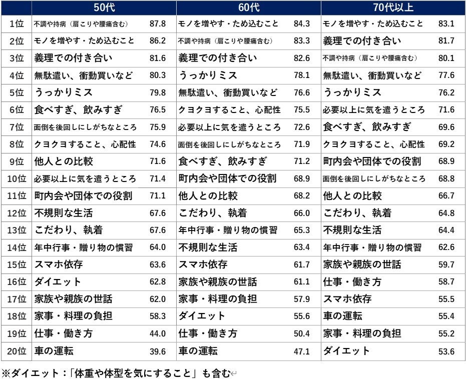 TOP3は「モノを増やすこと」「不調・持病」「義理での付き合い」人生後半は、身も心もスッキリと
