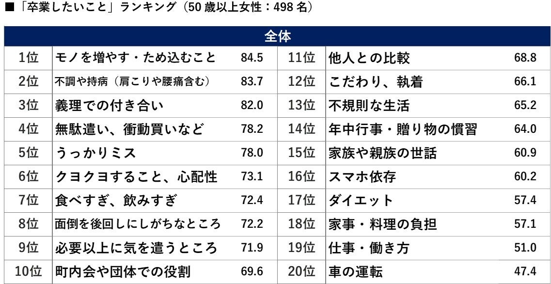 【50歳からのハルメク世代に聞く なんでもランキング】50歳以上の女性が選ぶ「卒業したいこと」