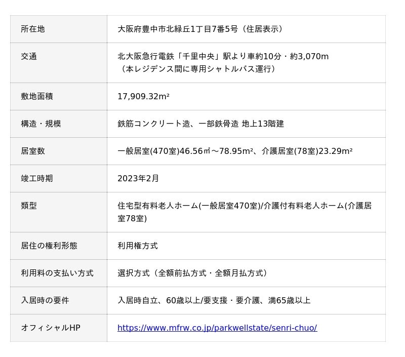 ■「パークウェルステイト千里中央/パークウェルステイト千里中央ケアレジデンス」物件概要