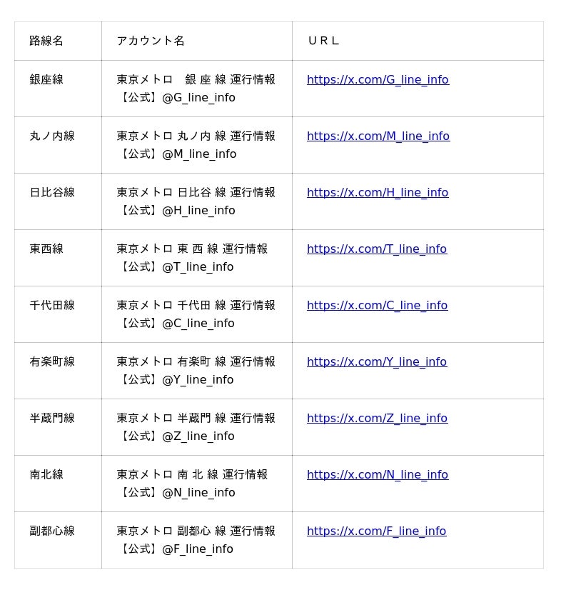 <公式運行情報 Xアカウント>