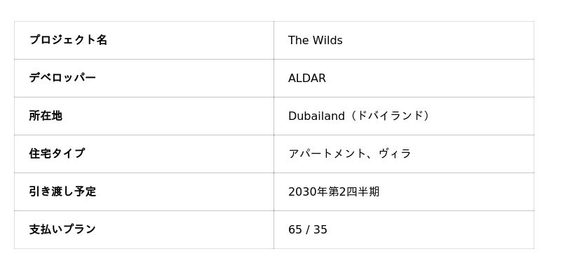 The Wilds Residencesは、自然豊かな環境と都市へのアクセスを兼ね備えた住宅コミュニティとして、ドバイでの新しいライフスタイルを提案するプロジェクトです。