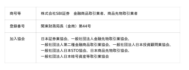 SBI証券で取り扱っている商品等へのご投資には、商品毎に所定の手数料や必要経費等をご負担いただく場合があります。また、各商品等は価格の変動等により損失が生じるおそれがあります(信用取引、先物・オプション取引、商品先物取引、外国為替保証金取引、取引所CFD(くりっく株365)、店頭CFD取引(SBI CFD)では差し入れた保証金・証拠金(元本)を上回る損失が生じるおそれがあります)。各商品等への投資に際してご負担いただく手数料等及びリスクは商品毎に異なりますので、詳細につきましては、SBI証券WEBサイトの当該商品等のページ、金融商品取引法等に係る表示又は契約締結前交付書面等をご確認ください。
