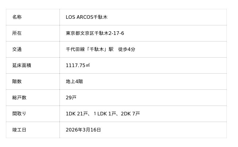 東京23区を中心に250棟を超える“新築1棟投資用賃貸住宅”の供給を行う株式会社明豊エンタープライズ(本社 東京都目黒区:代表取締役 矢吹 満)は、この度、新ブランド「LOS ARCOS(ロスアルコス)」シリーズ第1号物件となる「LOS ARCOS千駄木」が2026年3月16日に竣工しましたのでお知らせいたします。