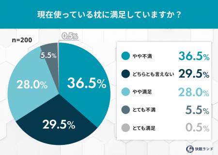 - やや不満:36.5%- どちらとも言えない:29.5%- やや満足:28.0%- とても不満:5.5%- とても満足:0.5%