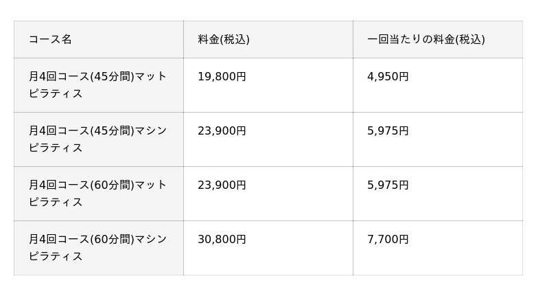 ピラティスが健康のための習慣の一つになってほしいとの願いで継続しやすい価格設定でご案内しています。