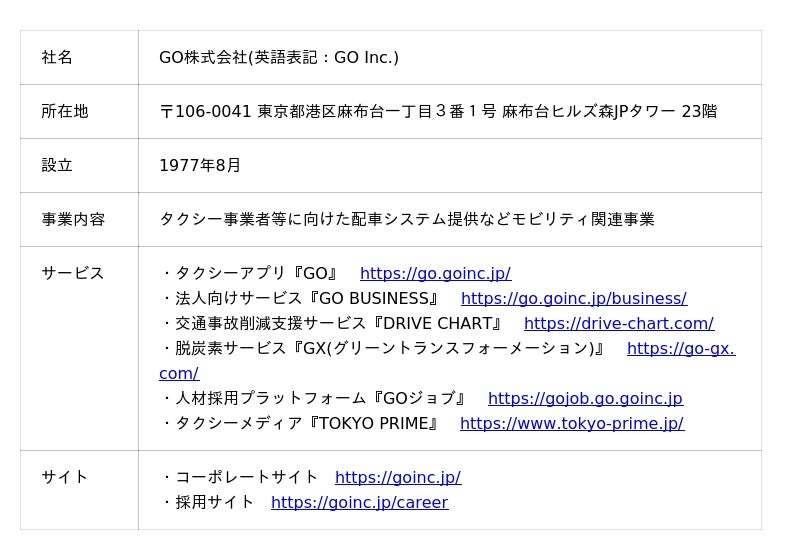 GO株式会社(本社:東京都港区、代表取締役社長:中島 宏)が展開する