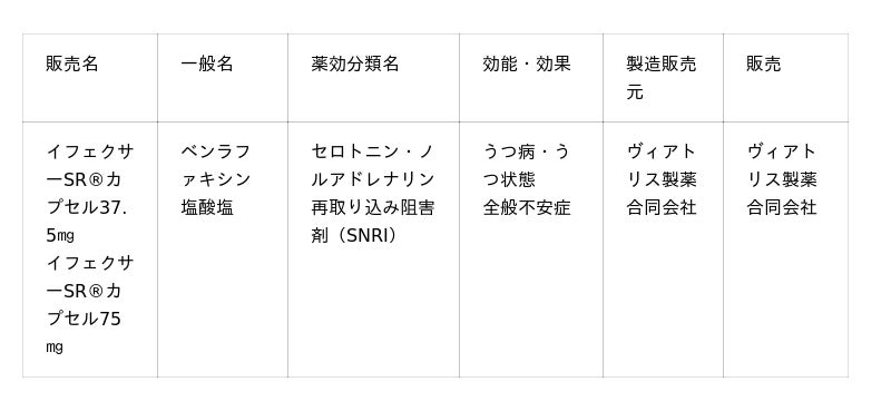 ヴィアトリス製薬合同会社(本社:東京都港区、社長:ソナ・キム)は、本日、「全般不安症」に対するセロトニン・ノルアドレナリン再取り込み阻害剤の「イフェクサーSRカプセル37.5mg、同75mg」(一般名:ベンラファキシン塩酸塩)(以下、イフェクサーSR)の国内における医薬品製造販売承認事項一部変更承認を取得しましたので、お知らせいたします。今回の承認は、国内で実施した第3相試験である、全般不安症(Generalized Anxiety Disorder/以下、GAD)患者を対象としたイフェクサーSRのプラセボ対照、無作為化、二重盲検、多施設共同試験(B2411367試験)1、および B2411367試験を完了したGAD患者を対象としたイフェクサーSRの長期継続投与試験(B2411368試験)の結果に基づくものです。
