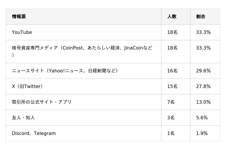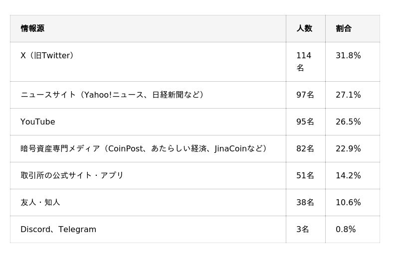 今回の調査では、暗号資産保有者が投資判断のために活用している主な情報源や、複数の情報源を併用している実態が明らかになりました。