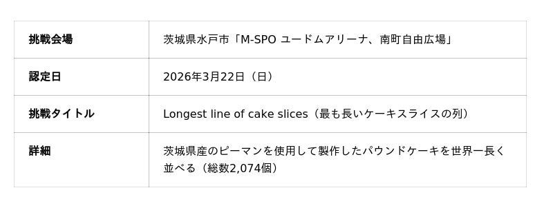 ■ ギネス世界記録(TM)」への挑戦:茨城の名産品「ピーマン」を使ったケーキを「祝福の象徴」へ