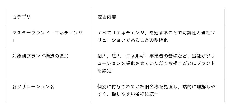 今回のリブランディングは、「エネチェンジ」ブランドのもとに、個人、法人、エネルギー事業者の皆様に向けた各ソリューションを一貫性のある構造に整理するものです。「エネルギーの未来をつくる」ENECHANGEが提供する価値をより明確に伝え、生活者や企業にとってわかりやすく、探しやすいブランドを構築します。