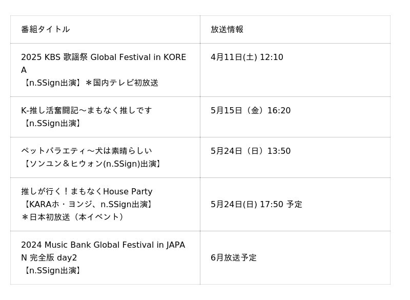 KBS Worldでは、5月に本イベントの放送のほか、n.SSign関連番組を続々放送いたします。