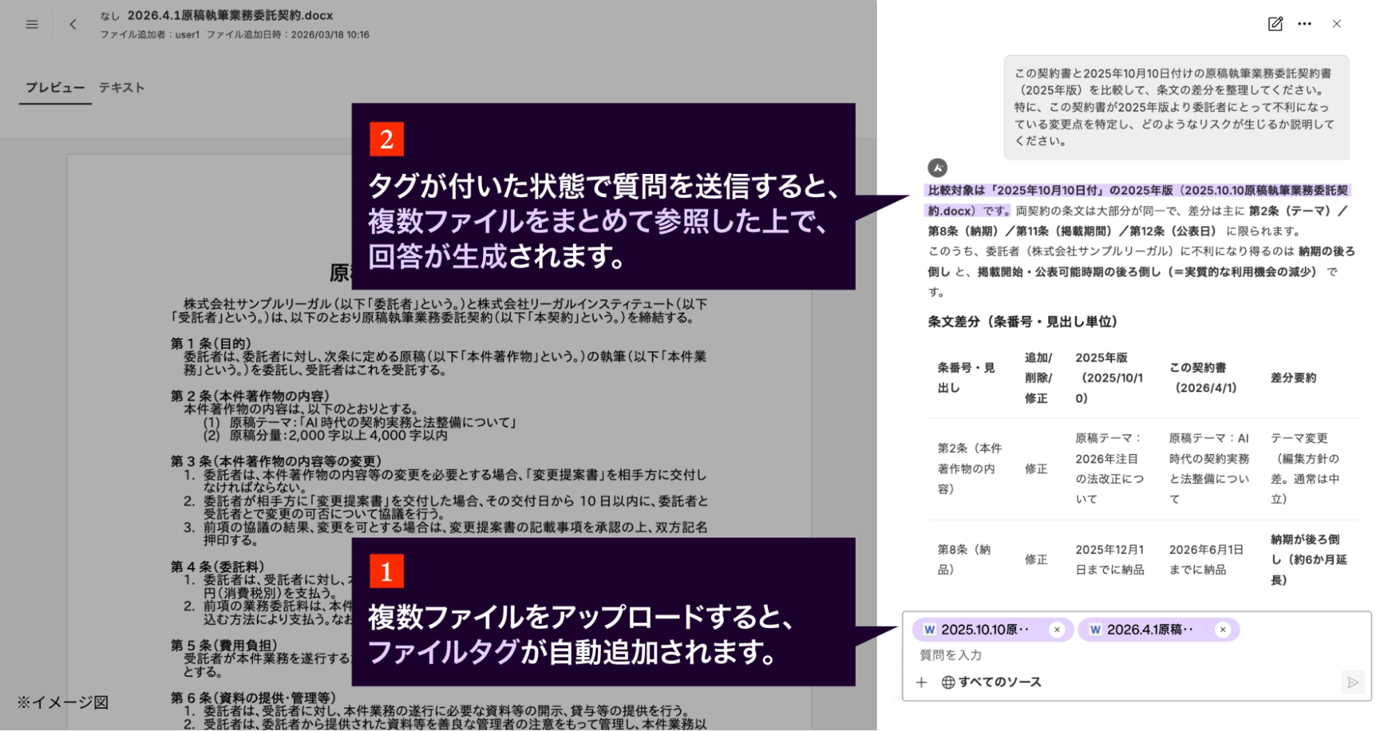 ~複数の契約書や関連資料を横断的に確認・比較し、法務業務の効率化を支援~