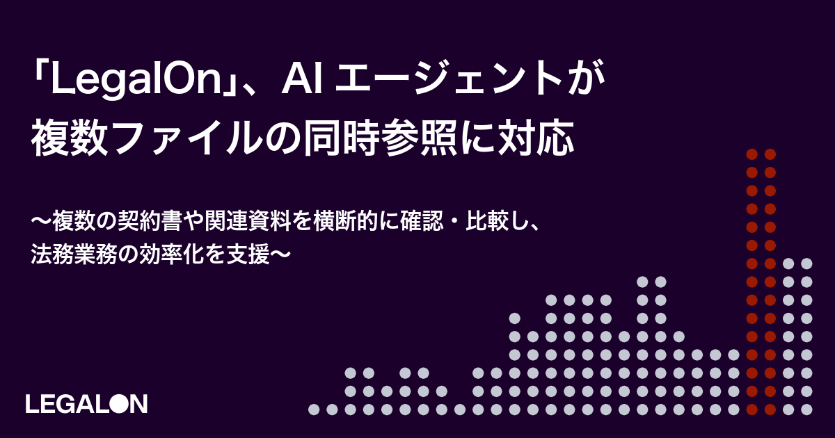 https://www.legalontech.com/jp/)」に搭載されているAIエージェントが、複数のファイルを横断的に参照しながら質問・分析できるようになりました。これにより、複数の契約書や関連資料を1つの会話内で確認・比較することが可能になります。