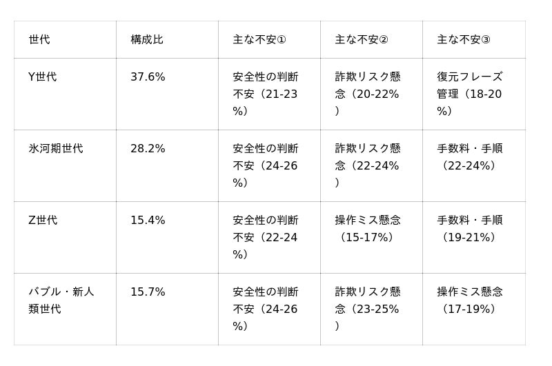 ウォレット保管に関する不安も、世代によって異なると考えられます。年代別のデータを詳しく見てみましょう。
