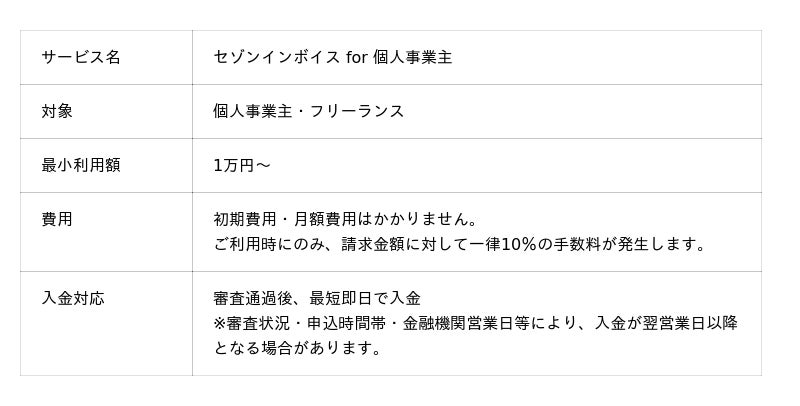 提携先の株式会社クレディセゾンでは、2021年より企業向けの請求債権買取(ファクタリング)サービスを提供しております。その中で、個人事業主やフリーランスのお客様からも同様のご要望をいただいており、このたび「セゾンインボイス for 個人事業主」の提供を開始いたします。