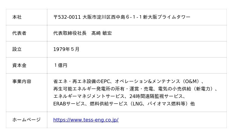 テスホールディングス株式会社(本社:大阪市淀川区、代表取締役社長:山本 一樹、以下「当社」)は、連結子会社であるテス・エンジニアリング株式会社(本社:大阪市淀川区、代表取締役社長:高崎 敏宏、以下「テス・エンジニアリング」)が、東洋メビウス株式会社(本社:東京都品川区、代表取締役社長:篠山 健司、以下「東洋メビウス」)の高槻物流センター向けに、オンサイトPPAモデル※1を活用した自家消費型太陽光発電システムによる再生可能エネルギー電気の供給(以下「本事業」)を2026年2月より開始いたしましたのでお知らせいたします。