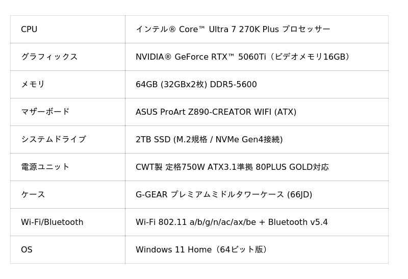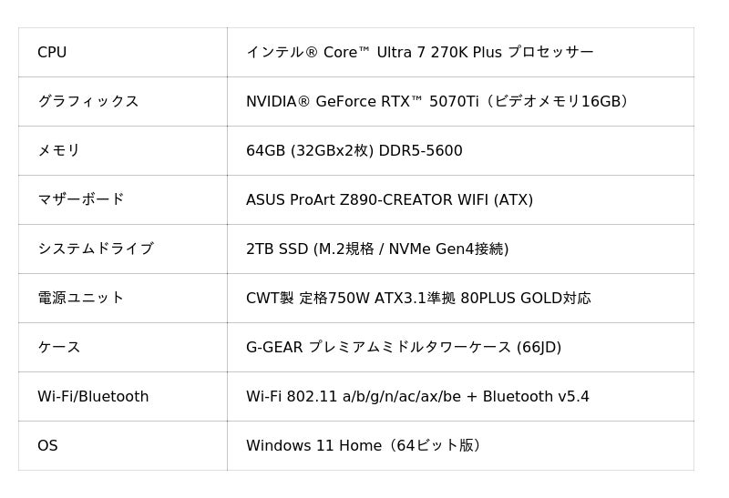 【TSUKUMO】G-GEAR、「インテル Core Ultra 7 270K Plus」を搭載したゲーミングPCを発売