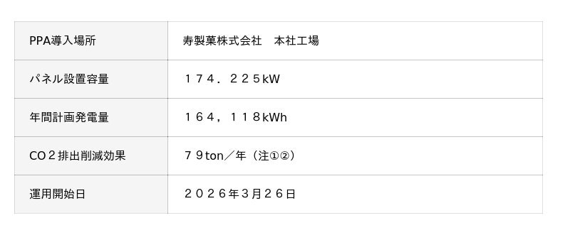 寿製菓株式会社 本社工場へ太陽光オンサイトPPAによる再エネ供給開始