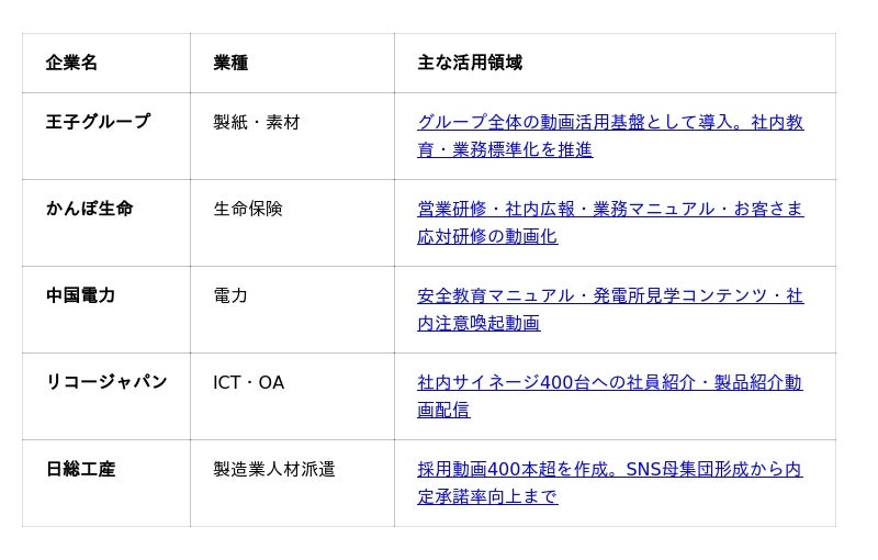 Video BRAINは業種・業界を問わず、大企業のさまざまな業務課題を動画で解決しています。