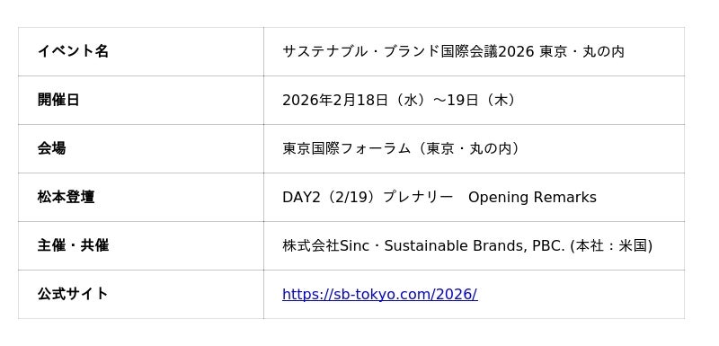 見過ごされてきた声の中にこそ、イノベーションの源泉がある。そのメッセージを携え、株式会社Halu(本社:京都府京都市、代表取締役:松本友理、以下「Halu」)代表の松本友理が、2026年2月19日(木)に開催された「サステナブル・ブランド国際会議2026 東京・丸の内」のDAY2プレナリーOpening Remarksに登壇しました。インクルーシブデザインが単なる配慮や社会貢献にとどまらず、成熟した市場の限界を突破してイノベーションを加速させる、企業の持続的成長をけん引する「経営戦略」であることを発信しました。