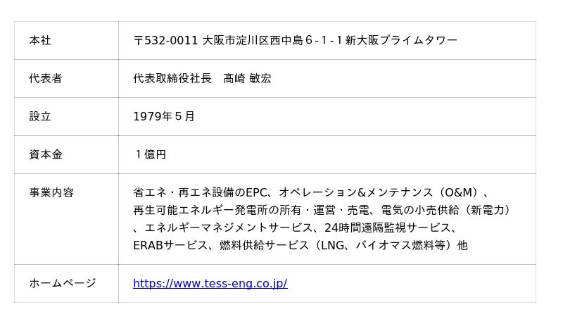 テスホールディングス株式会社(本社:大阪市淀川区、代表取締役社長:山本 一樹、以下「当社」)は、連結子会社であるテス・エンジニアリング株式会社(本社:大阪市淀川区、代表取締役社長:高崎 敏宏、以下「テス・エンジニアリング」)が、この度、高沢産業株式会社(本社:長野県長野市、代表取締役社長:高澤 曜宏、以下「高沢産業」)から「系統用蓄電所」の設置工事を受注いたしましたのでお知らせいたします。