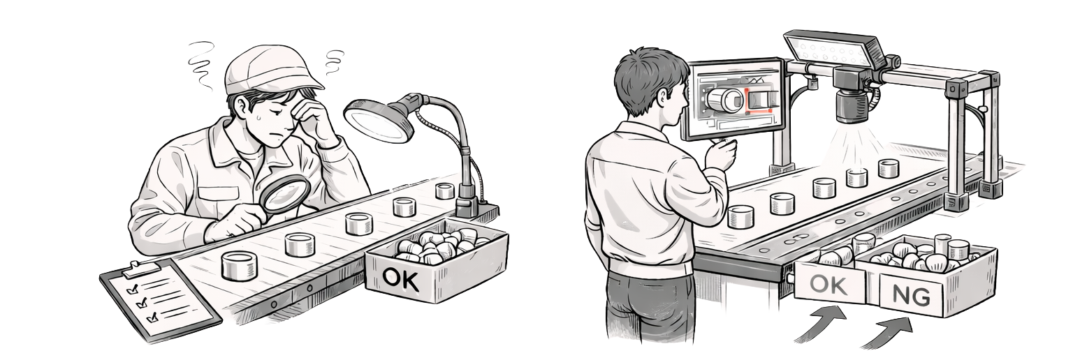 同じ生産ライン、同じ装置、同じ条件のもとでも、材料ロット・温度・湿度・装置の状態といったわずかな差異により、製品が完全に同一の状態で生産されることはほとんどありません。製品が変化するということは、それを判定する外観検査の条件もまた、変化し続けなければならないということです。
