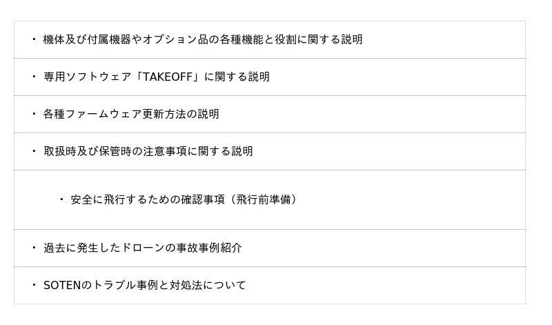 ※飛行訓練時に使用する機体一式は、各事業所にて採用されているSOTENとなりますが、