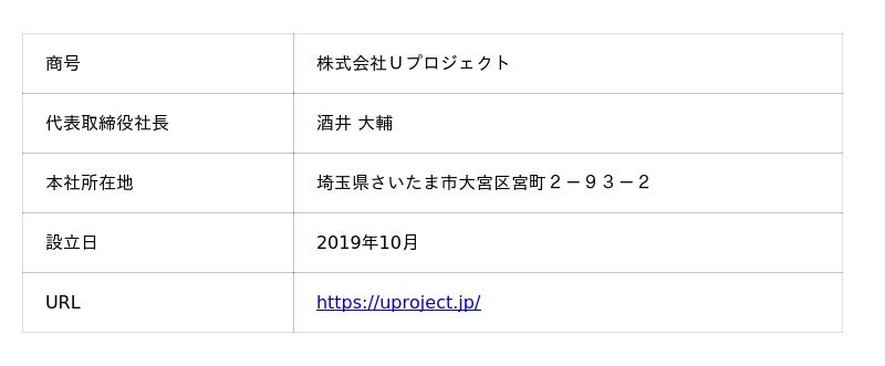 ミライドア株式会社(本社:東京都港区、代表取締役会長兼社長:澤田 大輔、以下「ミライドア」)は、埼玉県・株式会社日本政策金融公庫(以下「日本政策金融公庫」)と連携し、埼玉県内の地域金融機関等と共同で設立した埼玉県渋沢MIXイノベーション創出支援投資事業有限責任組合(以下「埼玉県渋沢MIXイノベーション創出支援ファンド」)より、株式会社Uプロジェクト(本社:さいたま市大宮区、代表取締役社長:酒井 大輔、以下「Uプロジェクト」)に投資を実行しましたことをお知らせいたします。