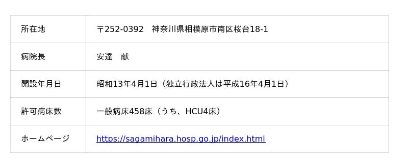 相模原病院様は、『私たちは患者の皆さまの人権を尊重し、十分な説明と同意に基づき、親切で心のこもった医療を提供します。』という理念を掲げておられ、旧陸軍・国立病院をルーツに持つ急性期総合病院であり、相模原の地域で最も歴史のある公的病院となります。