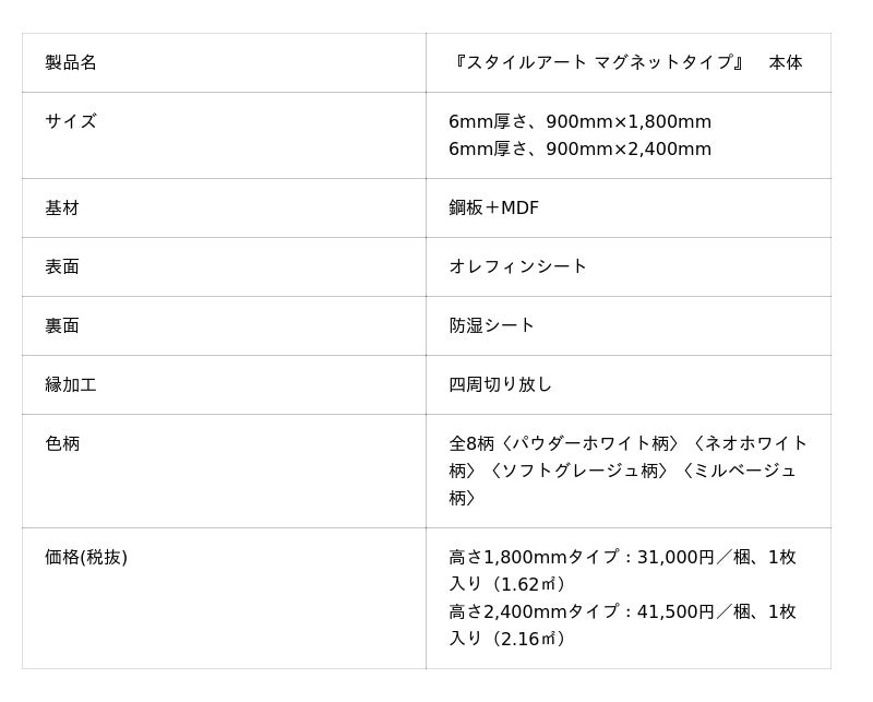 ◇マグネット対応壁材『スタイルアート マグネットタイプ』の特長