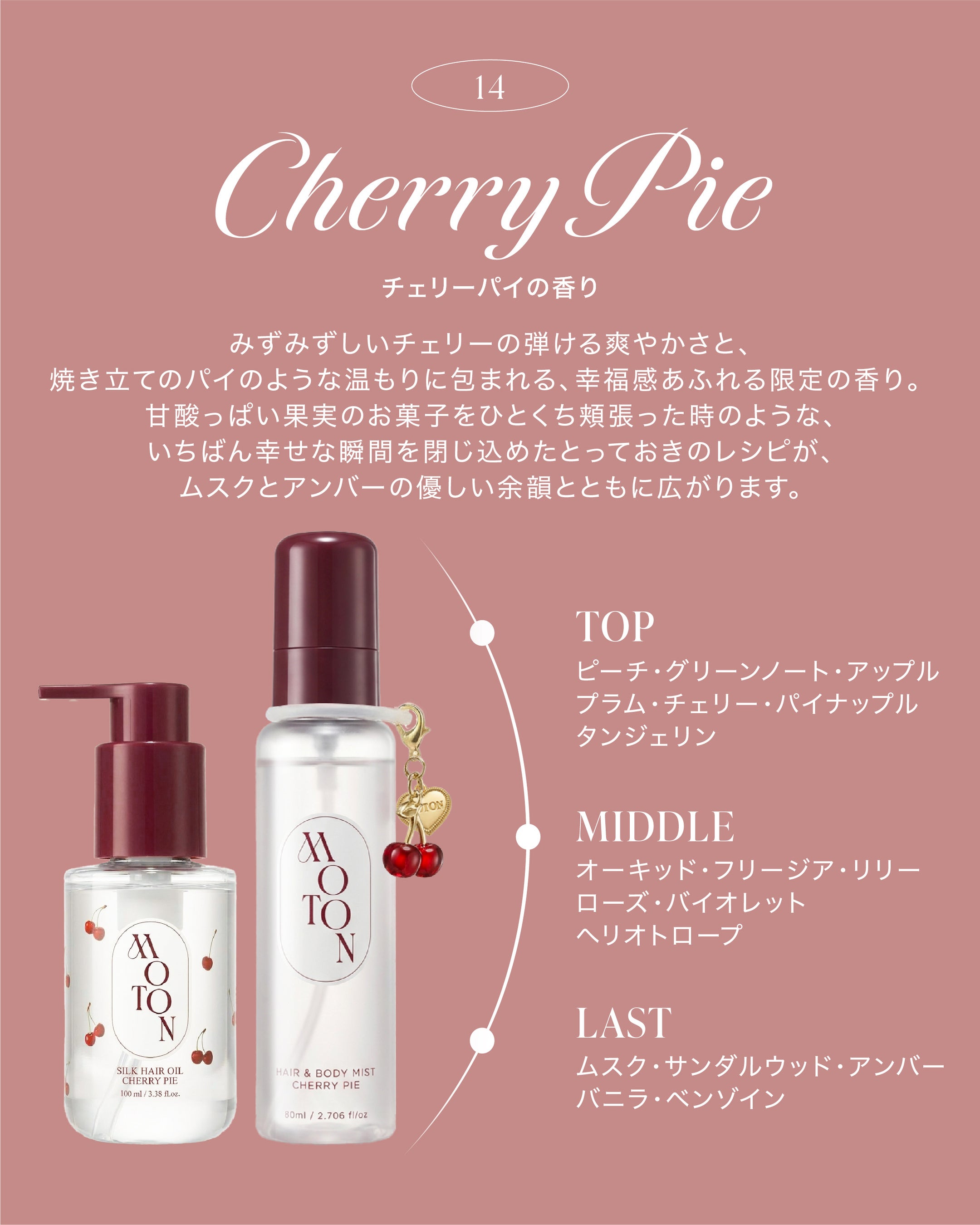 【MOTON新作】大人気ヘア&ボディミストとシルクヘアオイルから、数量限定でチェリーパイの香りが新登場!4月6日より全国で発売開始