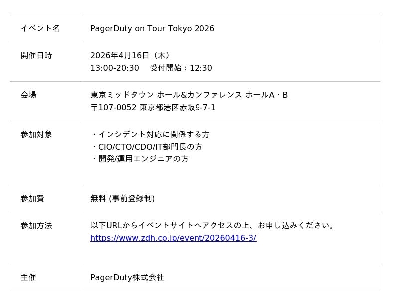 <PagerDuty on Tour Tokyo 2026開催概要>