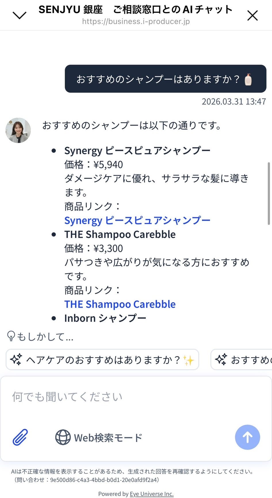 株式会社Eye Universeについて株式会社Eye Universeは、AI技術を活用して美容業界を含むさまざまな分野で顧客体験の向上を目指す先駆け企業です。美容業界における顧客体験の革新を通じて、新たな価値を創造し続けています。