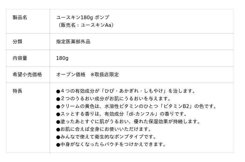 受賞製品:ユースキン180g ポンプ