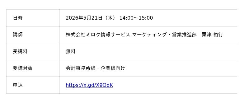 【参加受付中】―会計事務所様・企業様向け― ミロク情報サービス オンラインセミナーのご案内