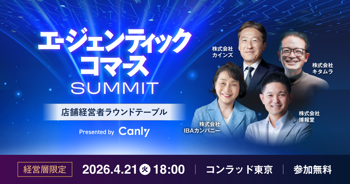 株式会社カンリー(本社:東京都品川区、代表取締役:辰巳 衛、秋山 祐太朗、以下 カンリー)は、2026年4月21日(火)、コンラッド東京にて、多店舗展開を行う企業の経営層を対象としたサミット「エージェンティックコマースサミット ~店舗経営者ラウンドテーブル~」を開催いたします。
