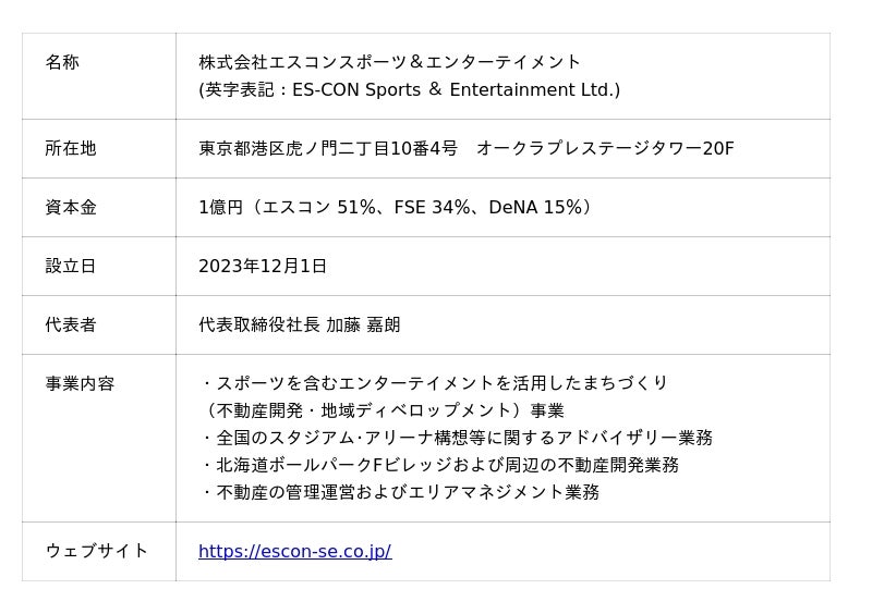 エスコンスポーツ&エンターテイメントは、当社の不動産開発力、株式会社ファイターズ スポーツ&エンターテイメントのボールパーク運営ノウハウ、株式会社ディー・エヌ・エーのデジタル知見を融合し、2023年12月に設立されました。エンタメを身近に感じるまちづくりやスタジアム構想を推進してまいります。