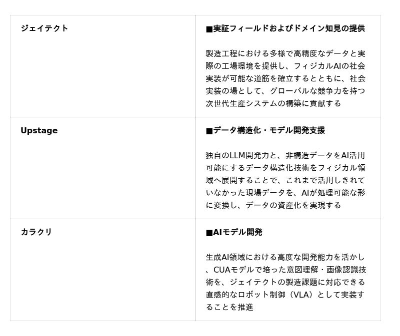 本プログラムへの採択を通じ、3社は製造業界におけるフィジカルAI活用の可能性を検証し、自律型・適応型生産システムの社会実装を目指します。