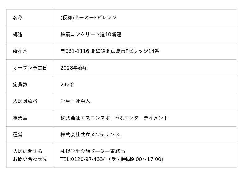 現在、北海道では北広島市や苫小牧市を中心とした産業の活性化に加え、半導体メーカーの進出など、工業分野での労働需要が急増しています。また、周辺エリアでは北海道医療大学の移転に伴う学生数の増加も見込まれており、利便性と質の高い住環境へのニーズが高まっています。当社はこうした地域課題に対し、学生からビジネスパーソンまでが安心して暮らし、研鑽を積める居住拠点を供給することで、地域のさらなる発展を後押しするべく、この度「(仮称)ドーミーFビレッジ」の建設に着手する運びとなりました。