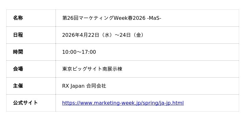 株式会社ClassLab.(代表取締役社長:古屋敷 大樹、本社:大阪府中央区、以下、ClassLab.)は、2026年4月22日(水)から24日(金)にかけて東京ビッグサイトで開催される「マーケティングWeek春」に出展いたします。