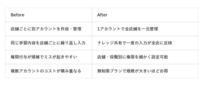 ~新機能追加。1アカウント・無制限利用・ナレッジ共有で、多店舗チェーンの管理コストを大幅削減~
