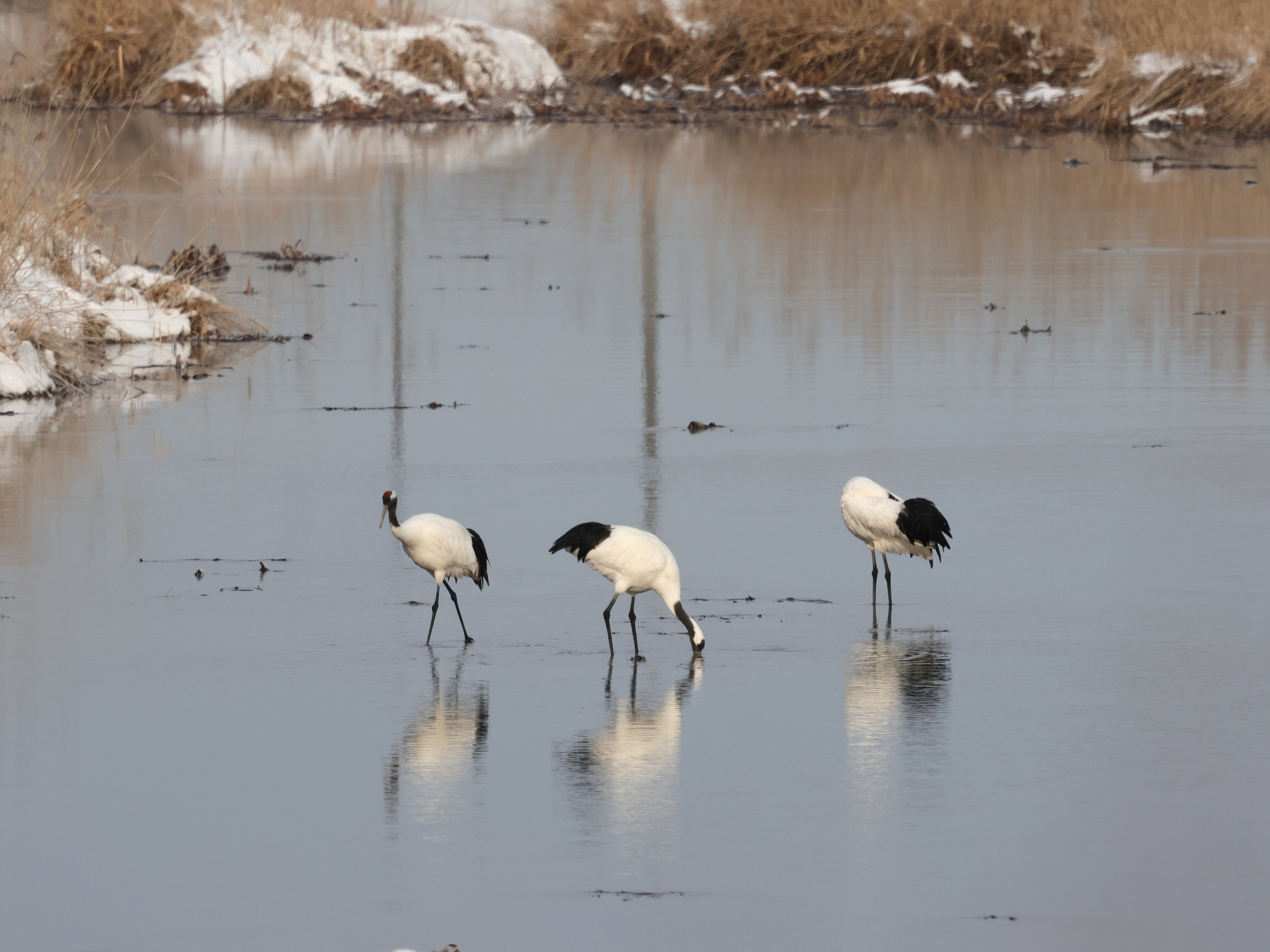 美々川を利用するタンチョウ