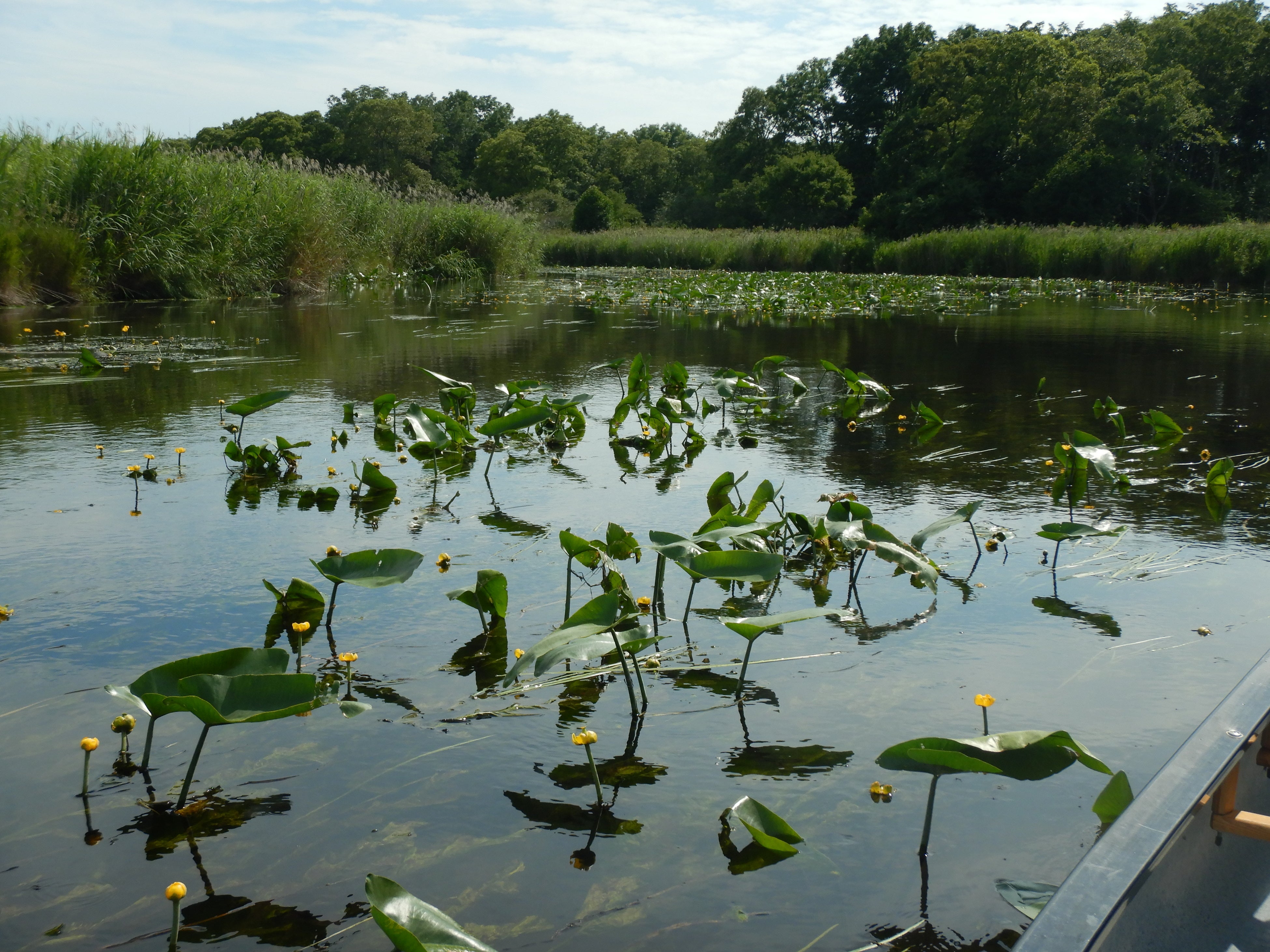 黄色いコウホネの花が水面をおおう